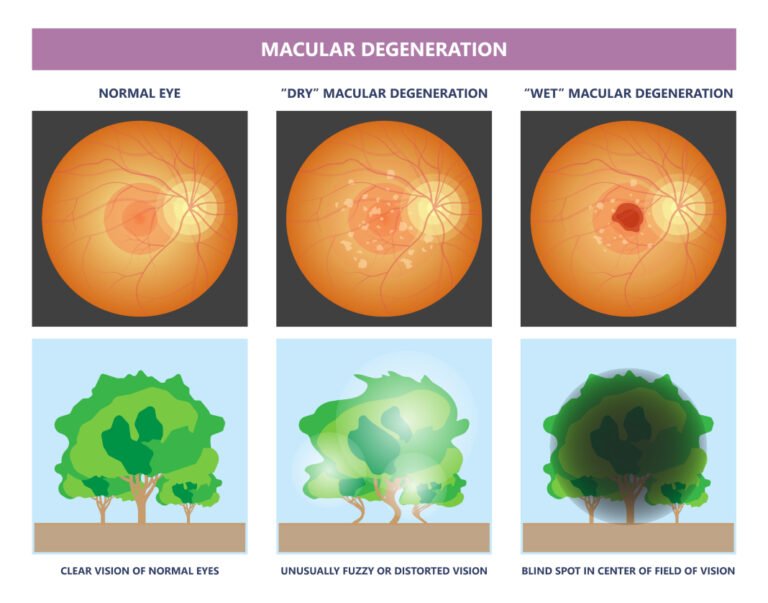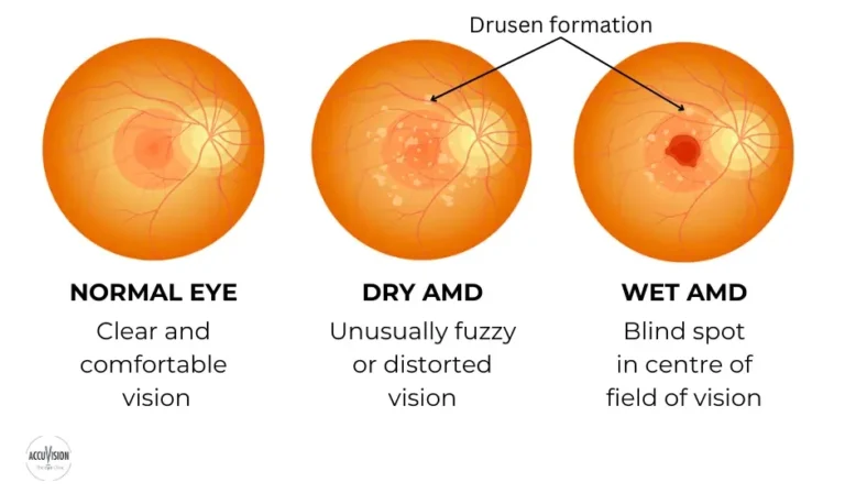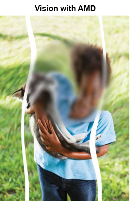AMD is a progressive eye disease that damages the macula (the central part of the