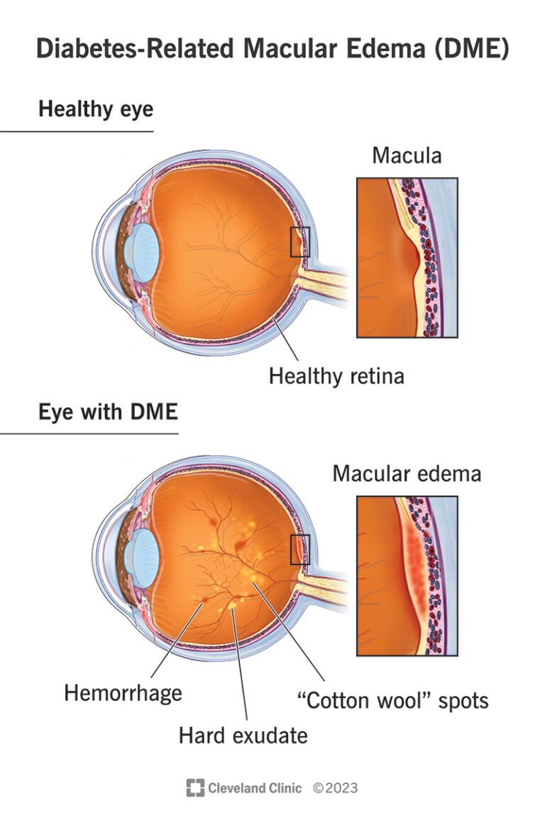 Diabetic Macular Edema is a complication of diabetic retinopathy where fluid leaks into