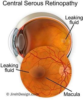 A condition where fluid accumulates under the retina (usually in the macular area),