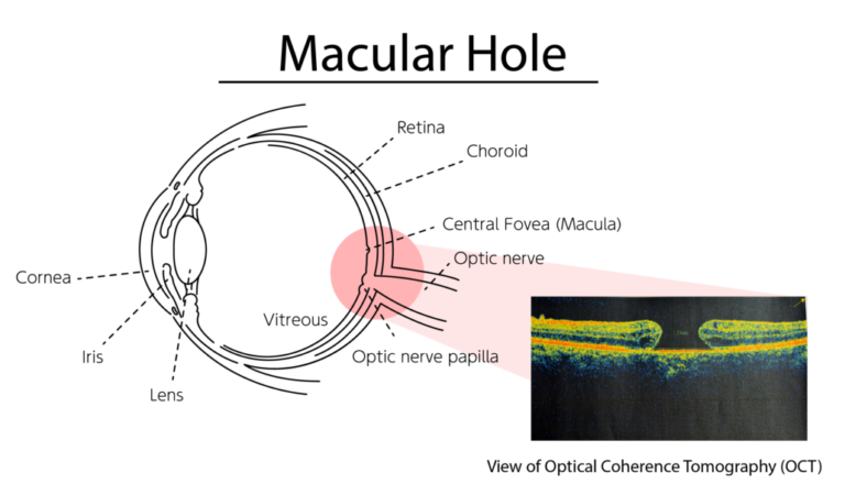 A macular hole is a small break or defect in the macula, the central part of the retina