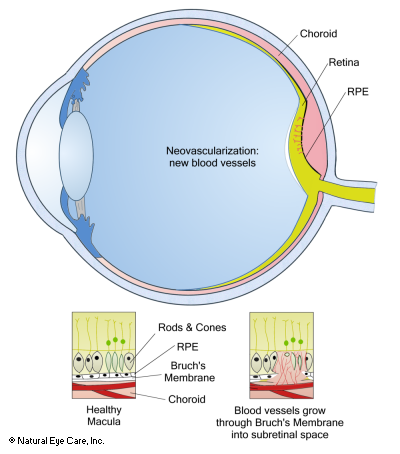 These vessels are fragile and leak fluid or blood, causing rapid vision loss if untreated.